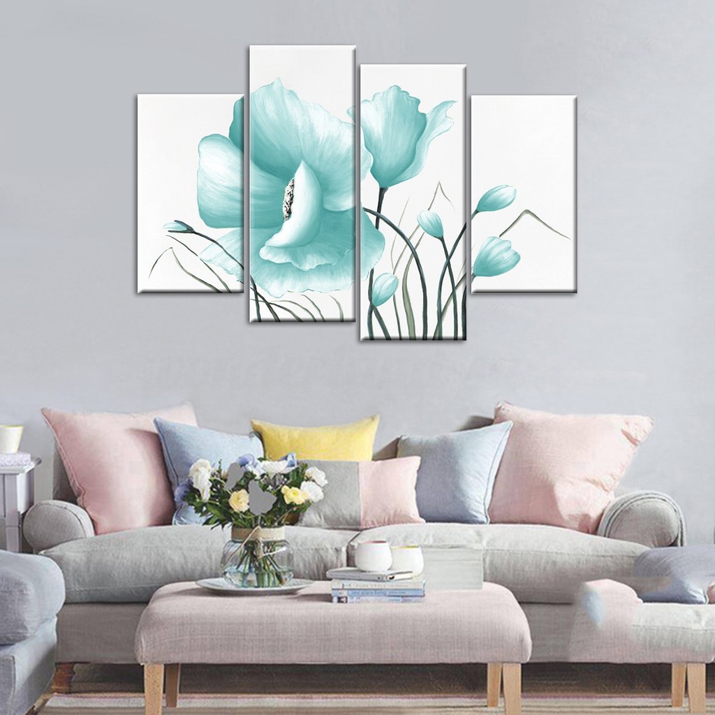 Daily Duck Egg Blue Floral Flower Canvas Picture Wall Art Canvas Prints Unframed